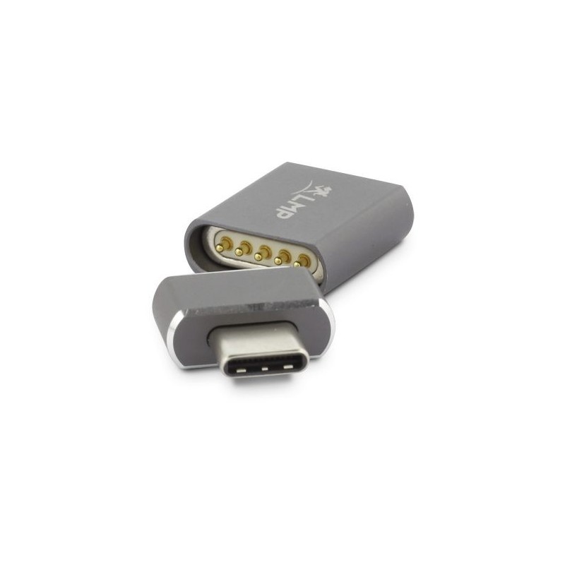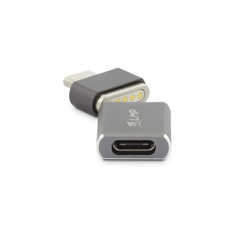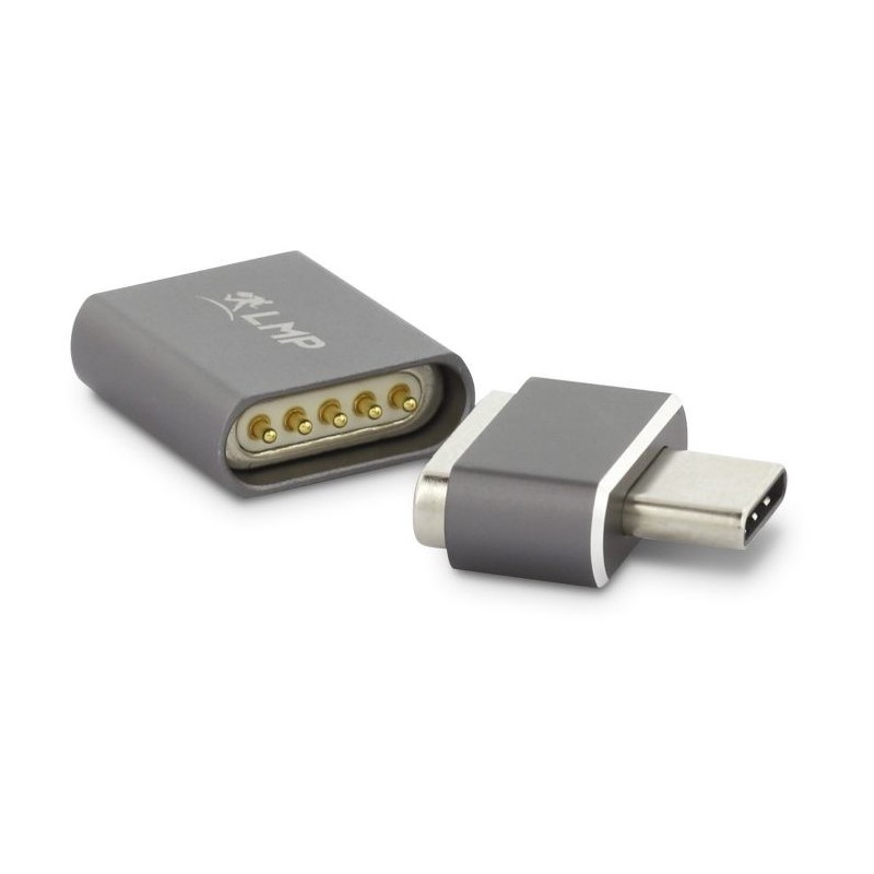 Adaptador USB-C (M/F) para ligar na porta de carregamento de um Mac/PC, e do outro lado a um cabo USB-C normal. Se o cabo for inadvertidamente ''puxado'', a parte magnética solta-se, evitando que o portátil ou computador seja arrastado e caia ao chão... evite acidentes. Suporta carregamento até 100W, não transfere dados ou sinal vídeo.