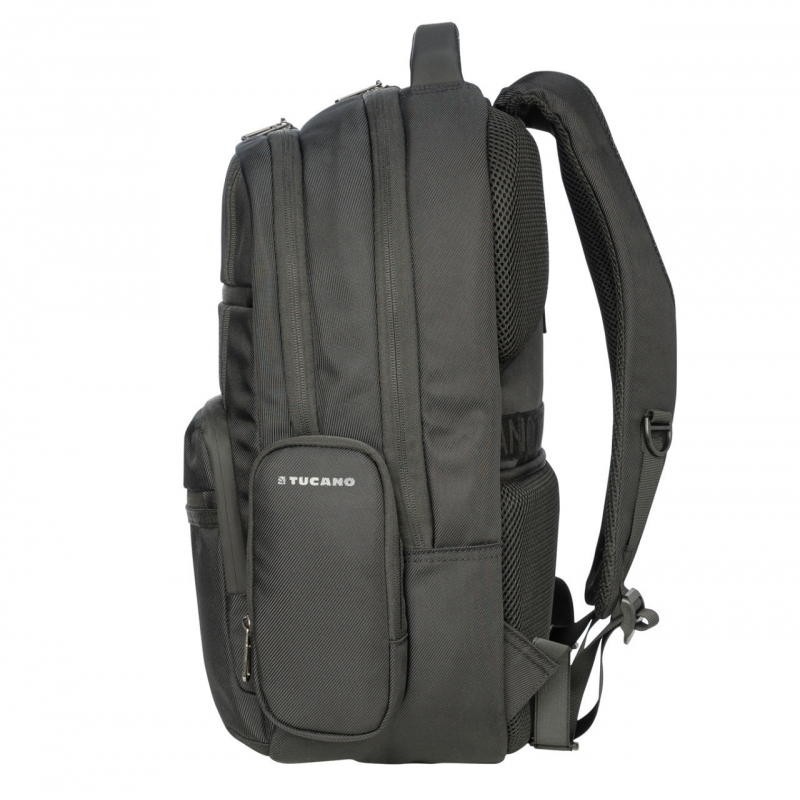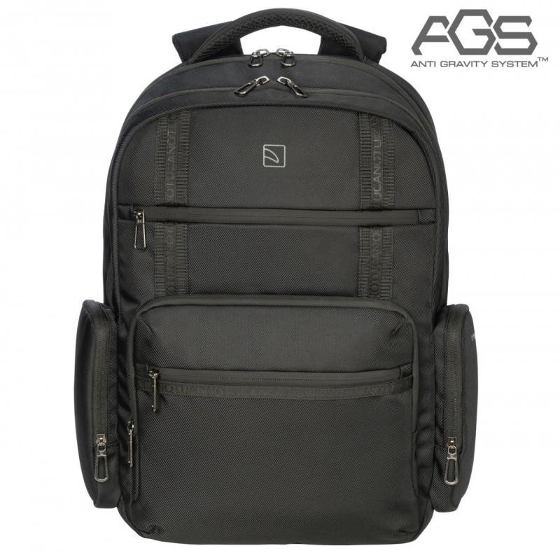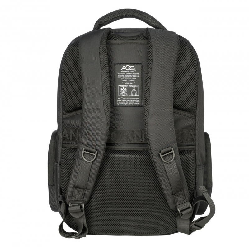 Mochila com um inovador sistema de suspensão nas alças traseiras, que ao esticar e encolher dinâmicamente com o peso, aliviam a pressão nos ombros e costas, protegendo-as ao reduzir o esforço. Tem um compartimento almofadado para um portátil até 17'' ou MacBook 16'' e outro para tablet, fita traseira para trolley, bolso de segurança, 2 bolsos laterais e 2 compartimentos distintos com zip, e ainda uma capa para proteger da chuva, que arruma na base.