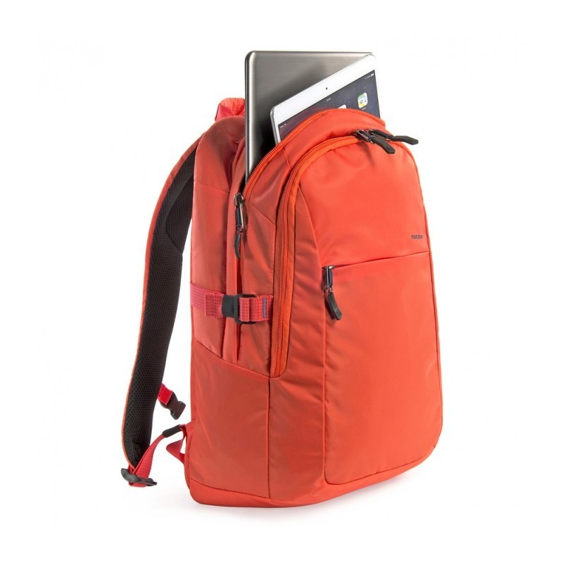 Mochila em nylon resistente com tecido interior e zips em cores contrastantes, e capacidade para portáteis até 15''. Tem um compartimento principal para o portátil, outro para tablet, e ainda um exterior de fácil acesso; todos têm organizadores para arrumação de pequenos acessórios, canetas, documentos, chaves, etc. As costas da mochila têm revestimento ergonómico acolchoado, assim como as alças.