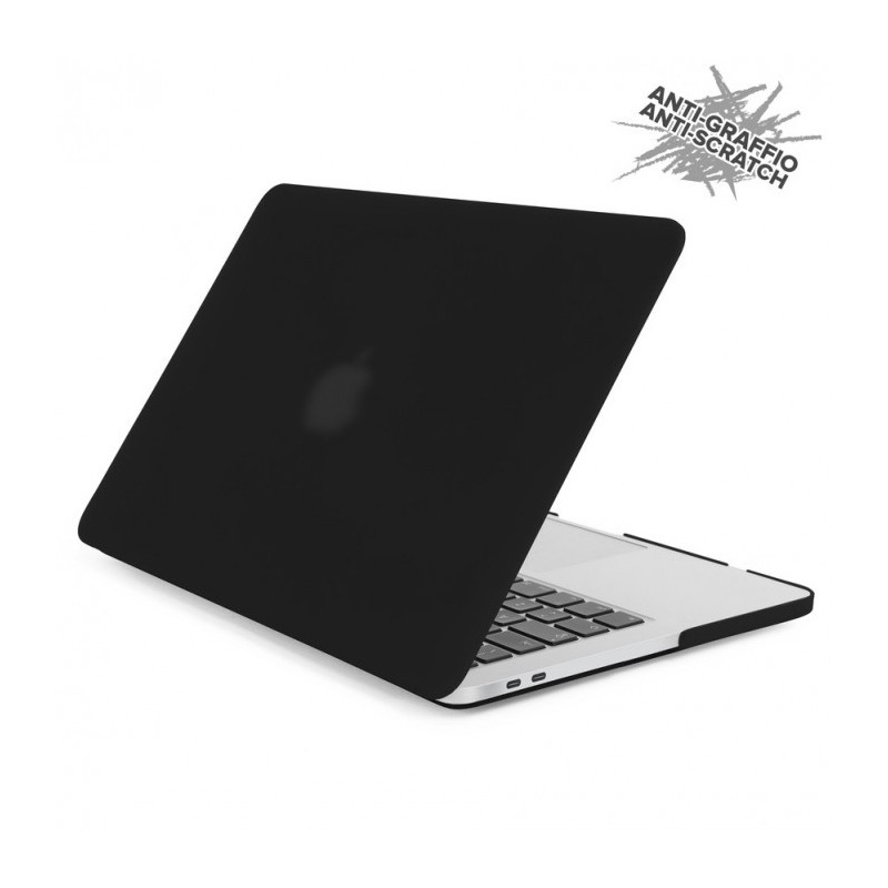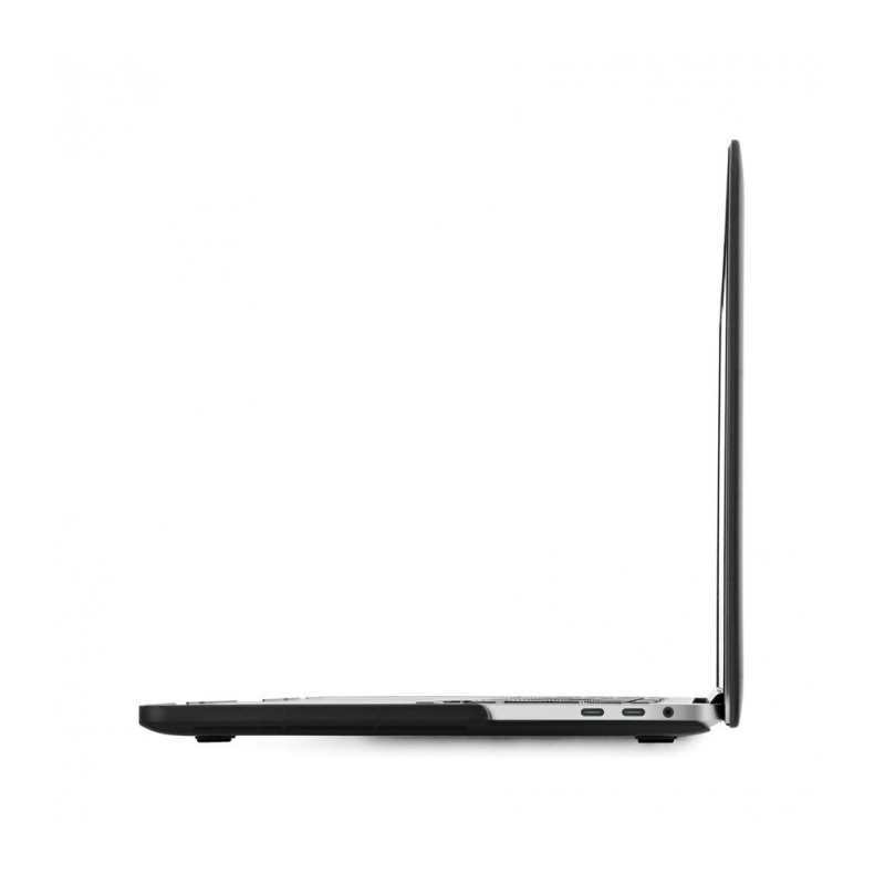 Capa semi-transparente com acabamento aborrachado para protecção do MacBook Pro 13'' v2020. Na parte inferior, tem ranhuras para facilitar a ventilação e pés de borracha.