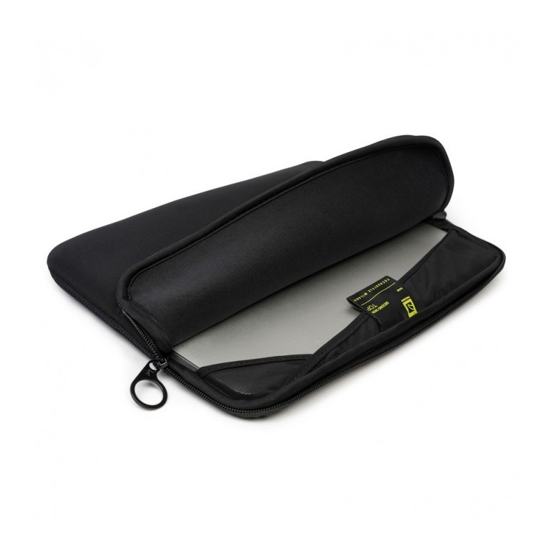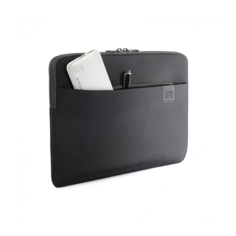 Bolsa tipo envelope em tecido neoprene almofadado de espessura 4 mm, com compartimento exterior para acessórios. Os bordos têm sistema Anti-Slip para impedir que o portátil caia. Tem zips duplos e prespontos planos para não ferir o MacBook. É compatível com MacBook Pro 16''.