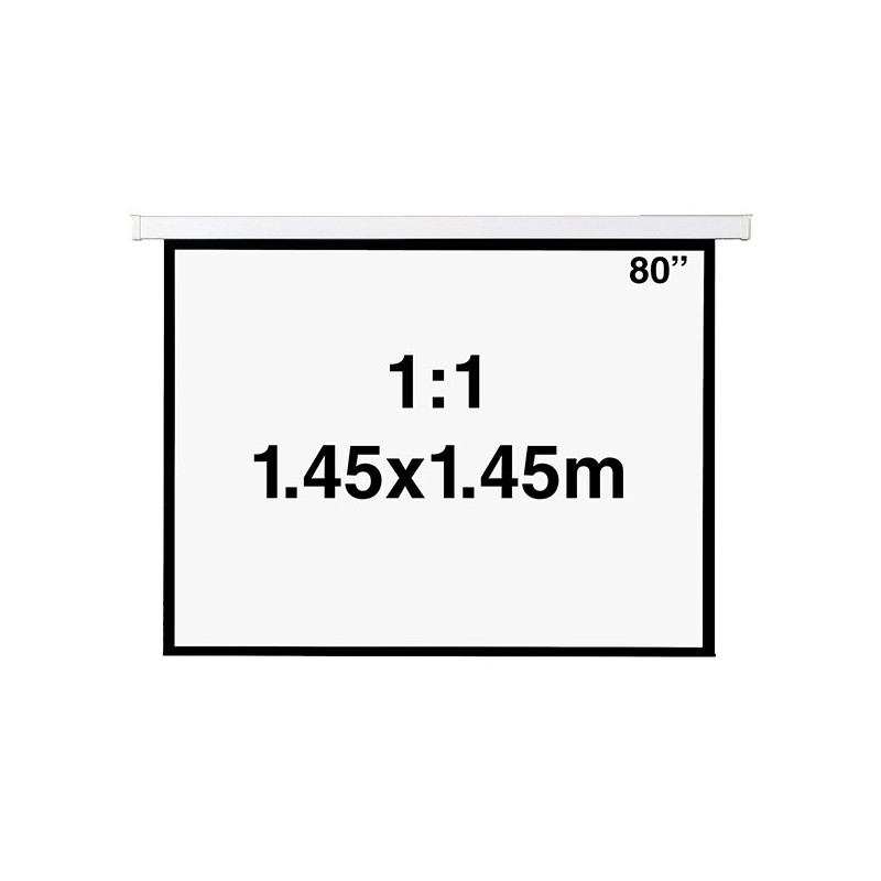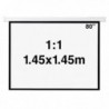 Suspensão Manual Possibilidade de fixação à parede e ao teto Blackout (costas pretas) 4 Black Borders (moldura preta) Tela Matte White Travamento de 15 em 15cm Relação 1:1 Medida: 80“ Dimensão Imagem LxA: 1450x1450mm Dimensão Tela LxA: 1530x1720mm DROP: 4cm
