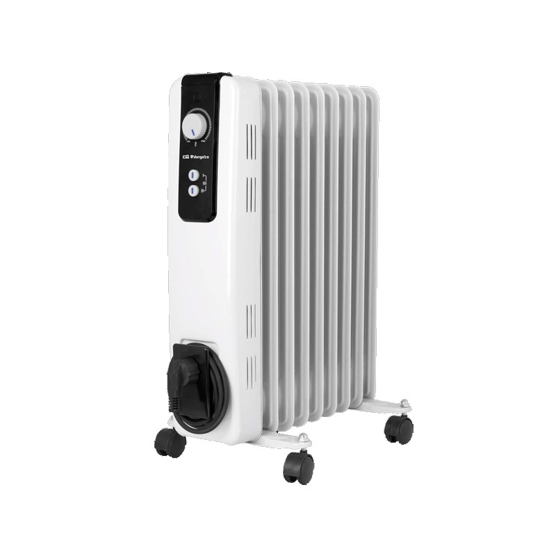 Potência máxima: 2000W 9 elementos Termóstato regulável Sistema de segurança contra sobreaquecimento Fácil de utilizar 3 potências: 800W - 1200W - 2000W Pega para transporte Recolhe cabos Luzes LED de funcionamento Rodas multi-direcionais Dimensões (lxpxa): 435x135x570mm 230V - 50Hz
