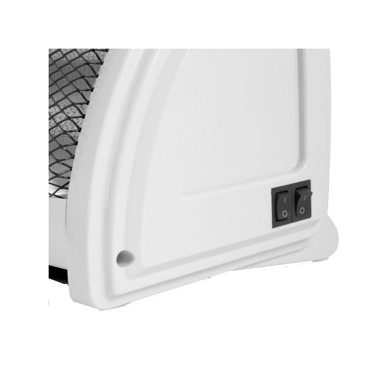 2 níveis de potência de calor 500/1000WReflector protegido de elevado brilhoAsa para transporte2 tubos cerâmicosRecolhe cabosDispositivo de segurança anti-inclinaçãoDimensões (largura altura comprimento): 375x200x175mmVoltagem 230V - 50Hz