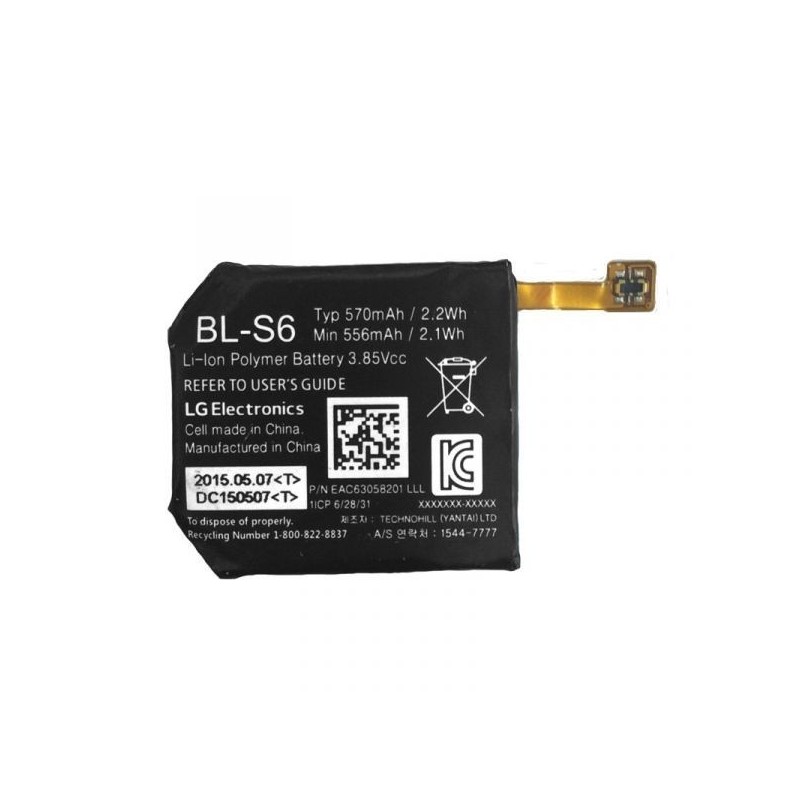 Peça de reposição para Smartphone, Tablet, Telemóvel ou Telefone Celular, Bateria Original LG BL-S6 570mAh Li-ion Polymer
