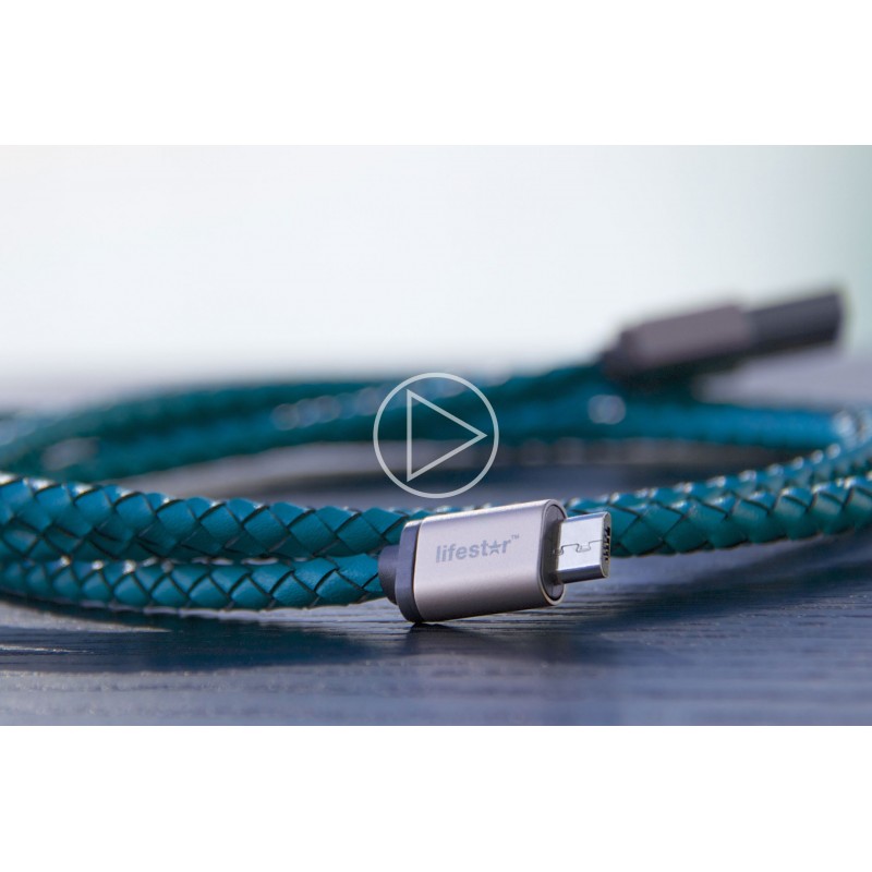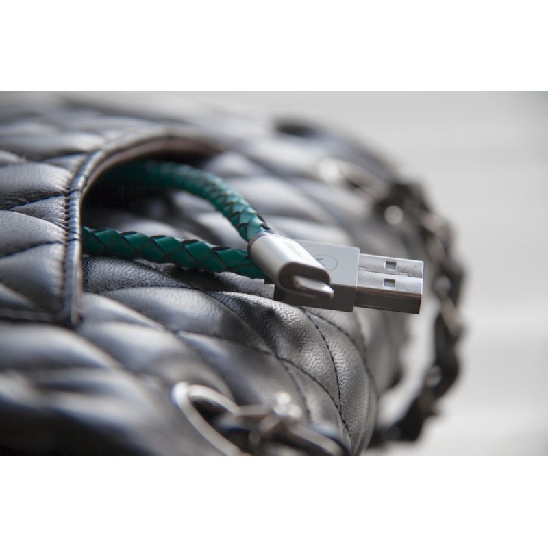 PROMOÇÃO: 19.95 em vez de 24.95, 20% desconto! Cabo Lightning-USB com 1m. Tem pontas metálicas douradas e cabo revestido a pele entrelaçada.