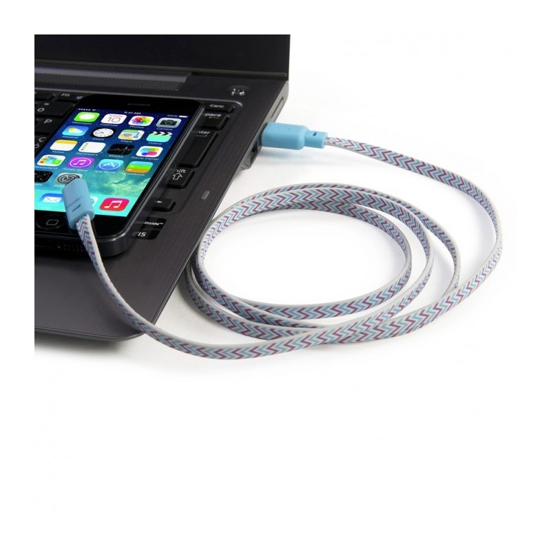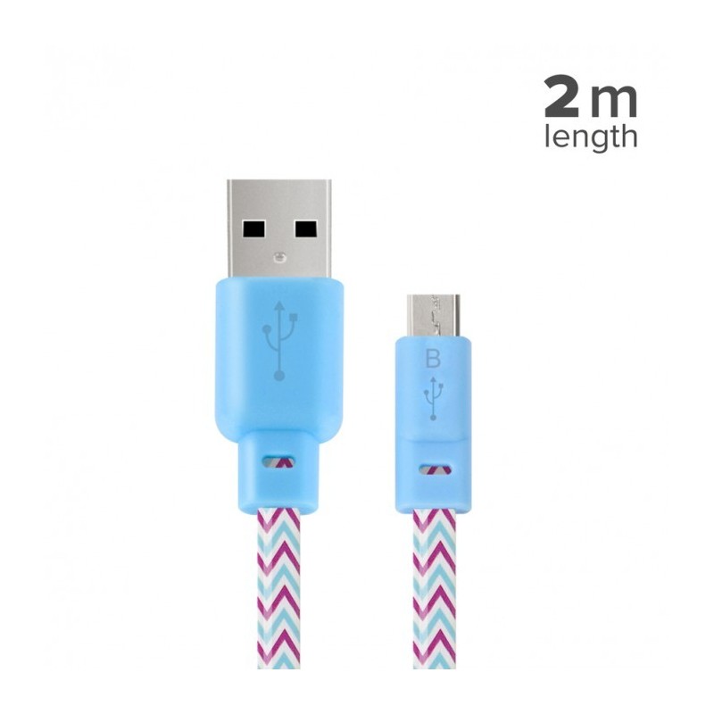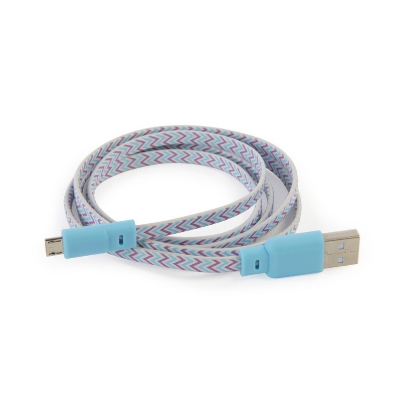 Cabo USB-microUSB de espessura plana e padrão impresso, com comprimento 1.2 metros.