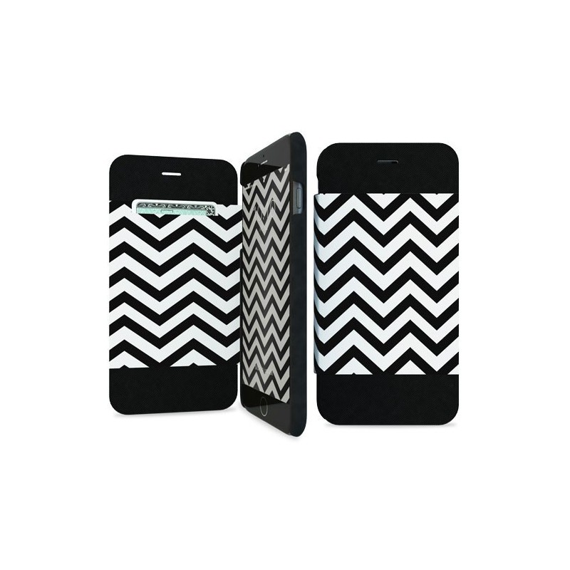 Capa para iPhone 6/6s com estrutura em policarbonato aborrachado revestido no exterior a PU impresso com motivo, funcionalidade de stand, ranhura para cartão de crédito, fecho magnético e magnet na traseira para segurar a pala quando o telefone está a ser usado.