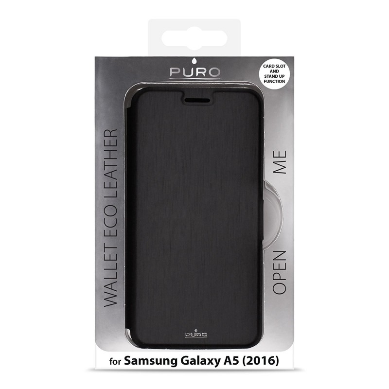 PURO SGGA510BOOKCBLK. Tipo de caso: Fólio, Compatibilidade da marca: Samsung, Compatibilidade: Galaxy A5, Coloração de superfície: Monótono, Cor da caixa: Preto, Suporte para secretária, Número de cartões de bolso: 1