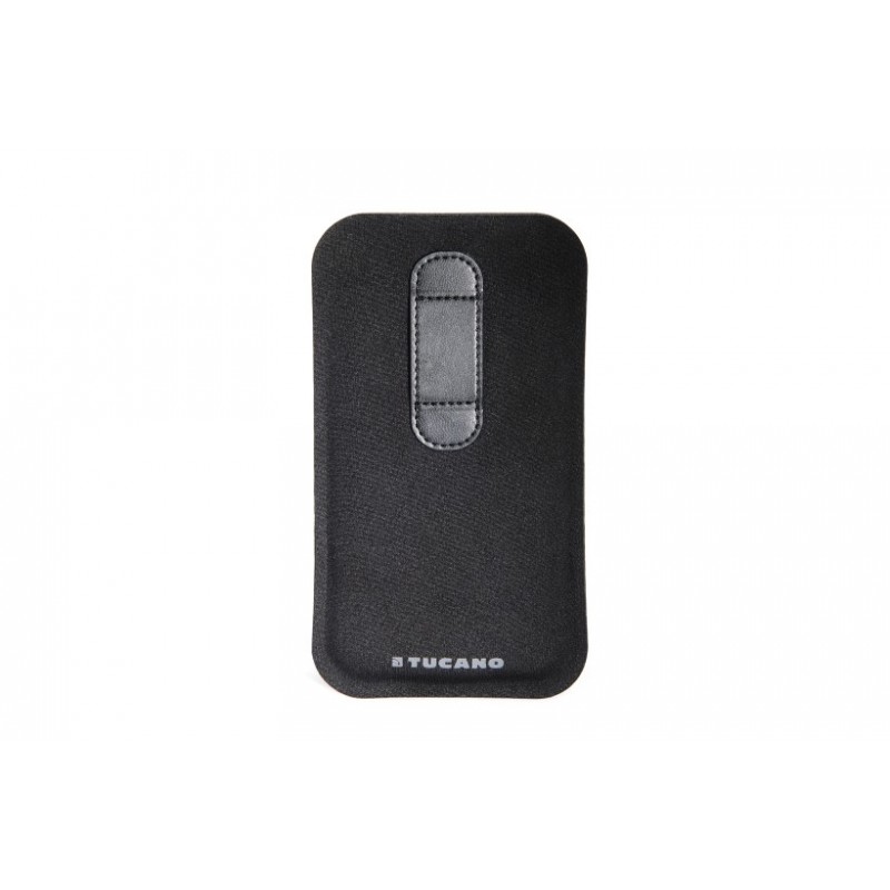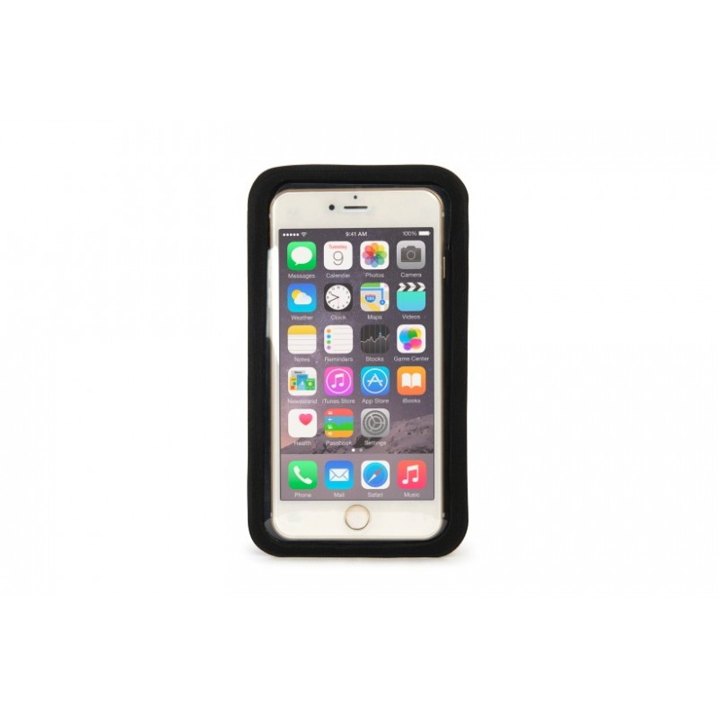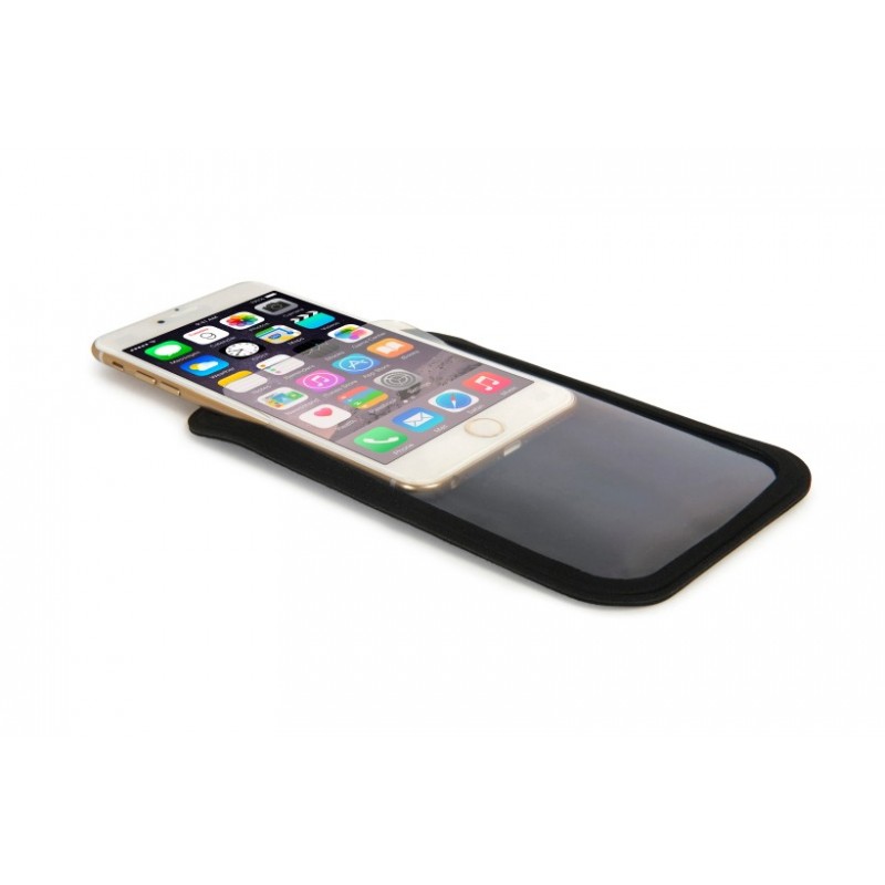 Capa universal para smartphones com traseira em neoprene e parte frontal em plástico transparente compatível com o uso de ecrãs touch screen. Tem uma presilha nas traseiras que permite pendurar a capa num cinto ou arrumar os earphones. Dimensões máximas do telemóvel: 8 x 15.2 x 1 cm.