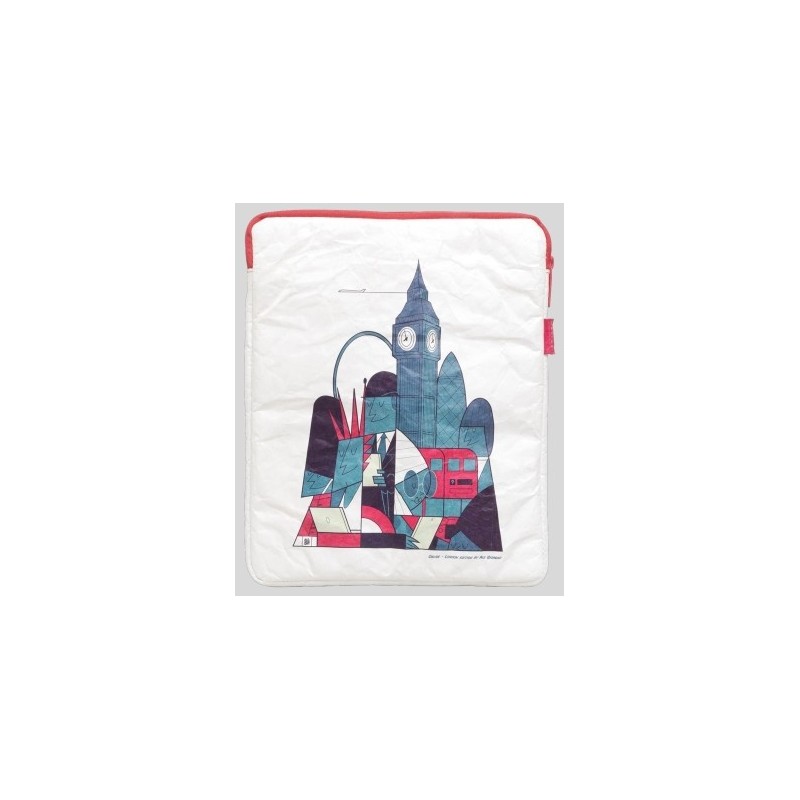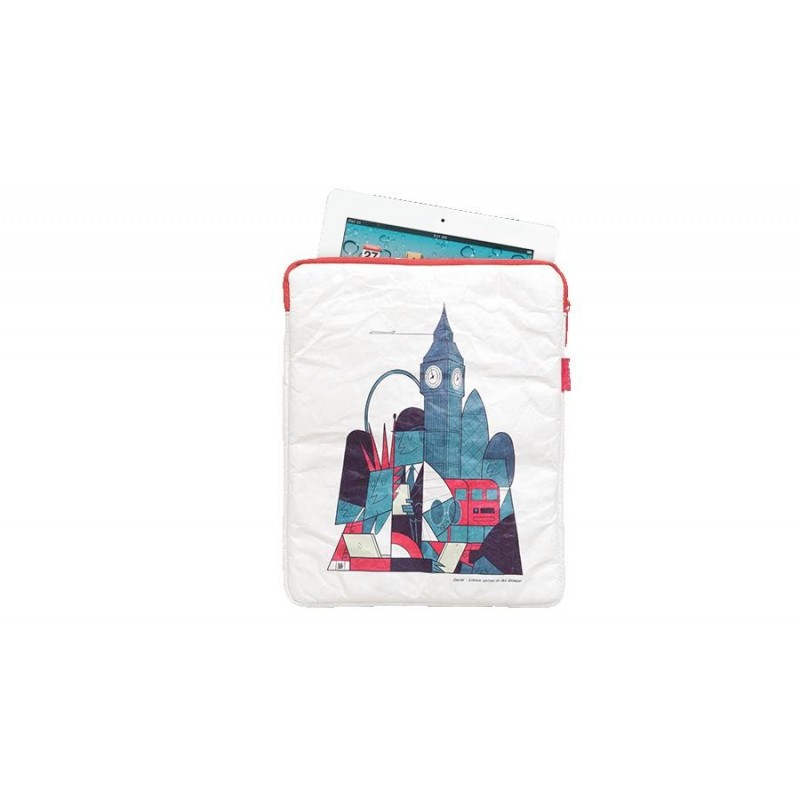 Bolsa para tablets de 10'' em Tyvek, um material sintético, à primeira vista muito semelhante a papel, mas ultra-resistente, à prova de água e 100% reciclável. Concebida pelo designer Ale Giorgini.