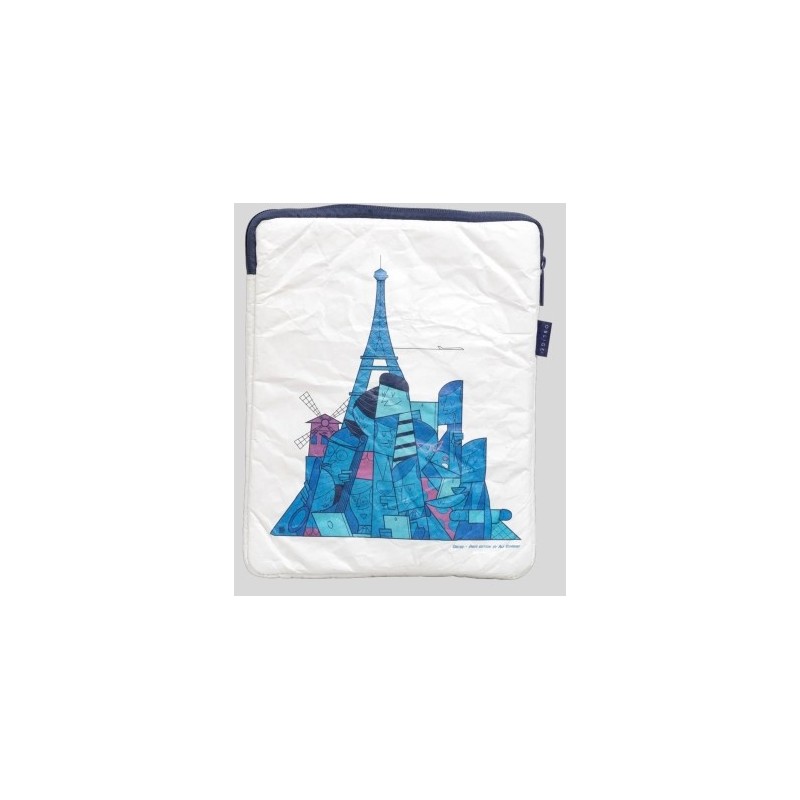 Bolsa para tablets de 10'' em Tyvek, um material sintético, à primeira vista muito semelhante a papel, mas ultra-resistente, à prova de água e 100% reciclável. Concebida pelo designer Ale Giorgini.