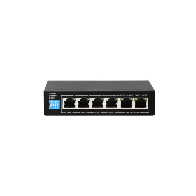 | Interface | 4 portas PoE RJ45 + 2 Uplink RJ45 |