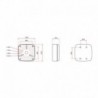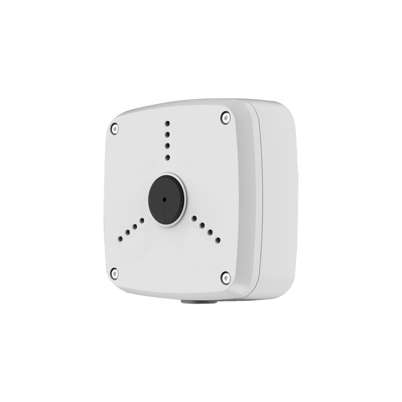 Permite alocar o alimentador, a cablagem e os acessórios da instalação no seu interior. Dispõe de múltiplos orifícios para instalação de diferentes tipos de câmaras compactas ou domes. Fixação à parede ou ao tecto através de 4 parafusos incluídos. A câmara é instalada na cobertura desmontável do suporte. Permite a passagem interna dos cabos.