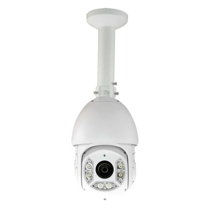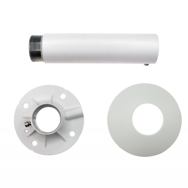 Compatible con las cámaras (Ver compatibilidad de accesorios). Fixação no tecto através de 4 parafusos incluídos. A câmara fica rosqueada no suporte e presa com o parafuso, o que garante uma máxima fixação.