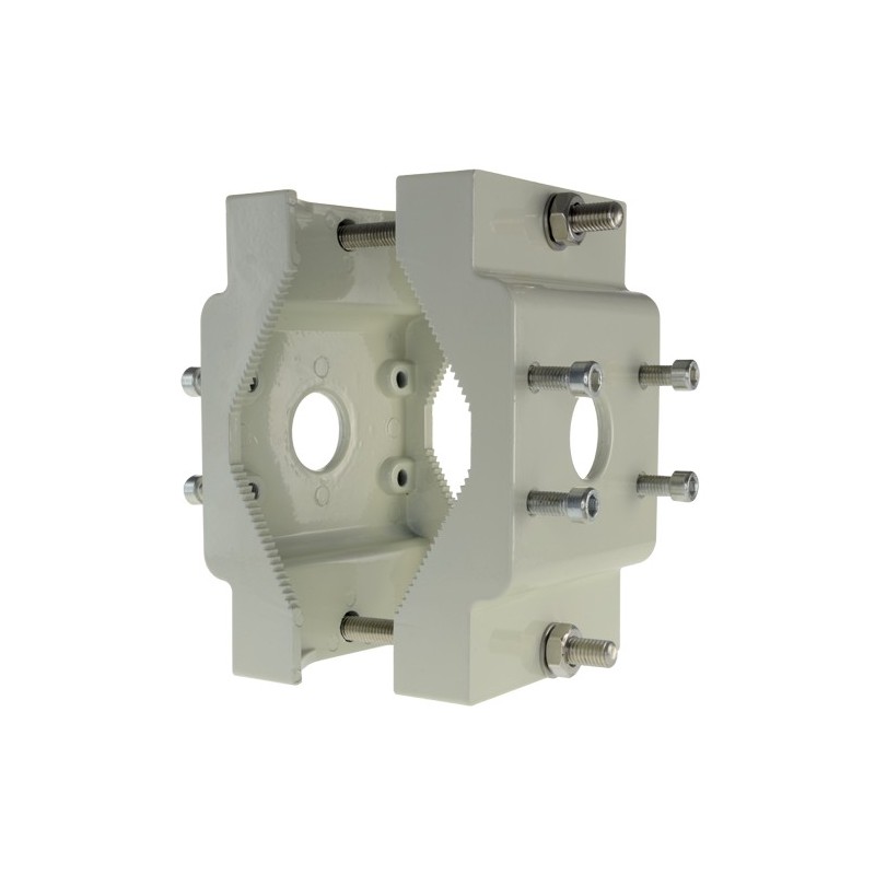 Permite a fixação de câmaras em ambas as faces do suporte e incorpora orifícios para passagem de cabos.