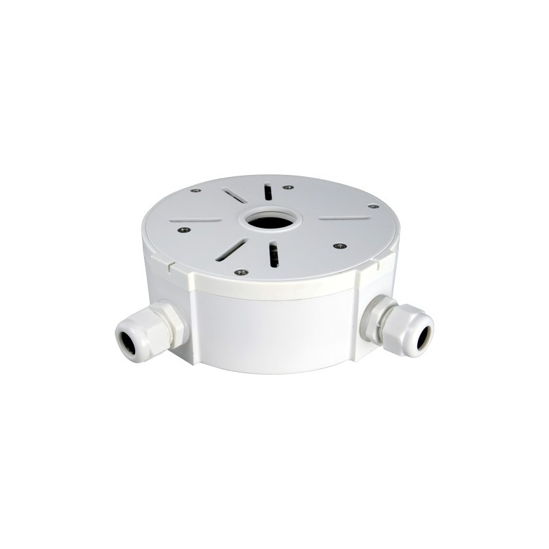 Permite alocar o alimentador, a cablagem e os acessórios da instalação no seu interior. Dispõe de múltiplos orifícios para instalação de diferentes tipos de câmaras compactas ou domes. Fixação à parede ou ao tecto através de 4 parafusos incluídos. A câmara é instalada na cobertura desmontável do suporte. Permite a passagem interna dos cabos.