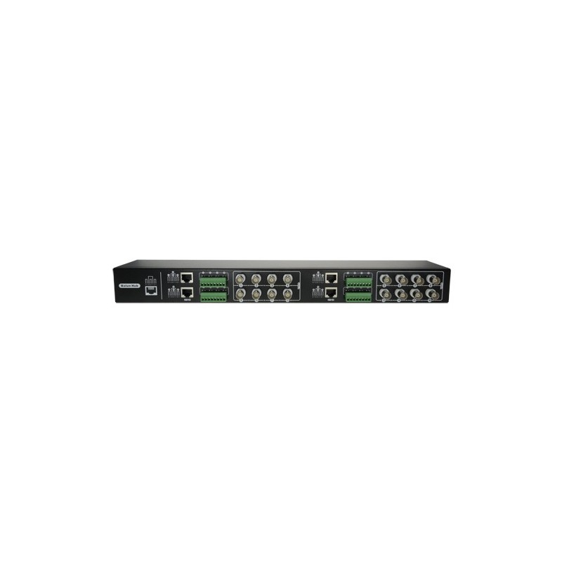 O adaptador possui 16 conectores BNC, para conectar a um videogravador. Inclui 16 baluns individuais BA612P-HAC para conectar a cada câmara.