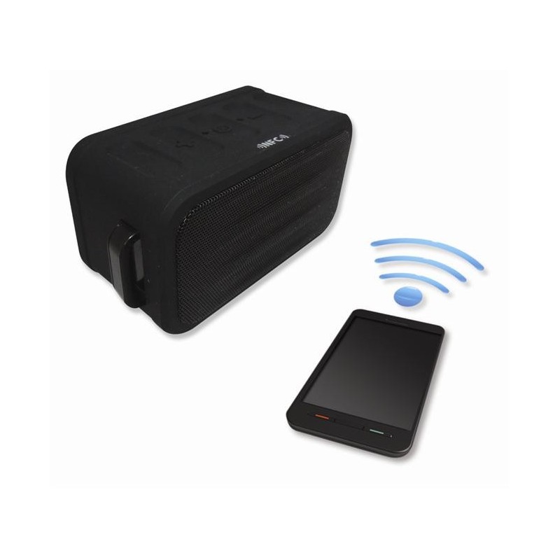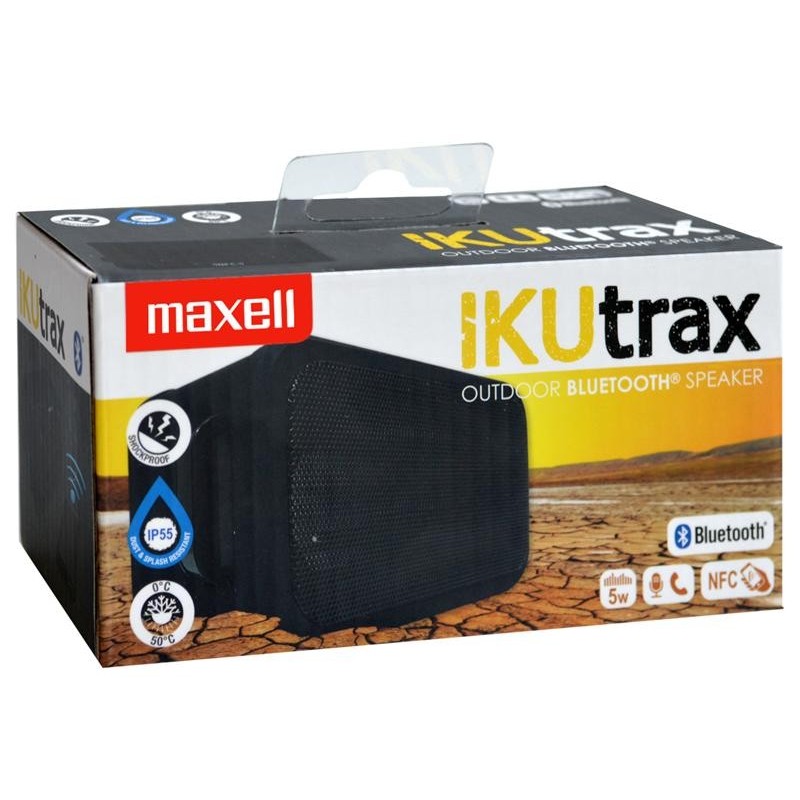 Maxell IKUtrax MXSP-BT150. Canais de saída de áudio: 1.0 canais. Classificação de Energia RMS: 5 W, Extensão da frequência: 150 - 20000 Hz, Impedância: 4 Ω . Tecnologia da conectividade: Com fios e sem fios, Conectividade de série: NFC/Bluetooth/3.5 mm, Versão Bluetooth: 3.0+EDR. Tipo de produto: Stereo portable speaker, Cor da caixa: Preto, Design: Rectângulo. Uso recomendado: Telemóvel/Smartphone, Amplificador: Interno