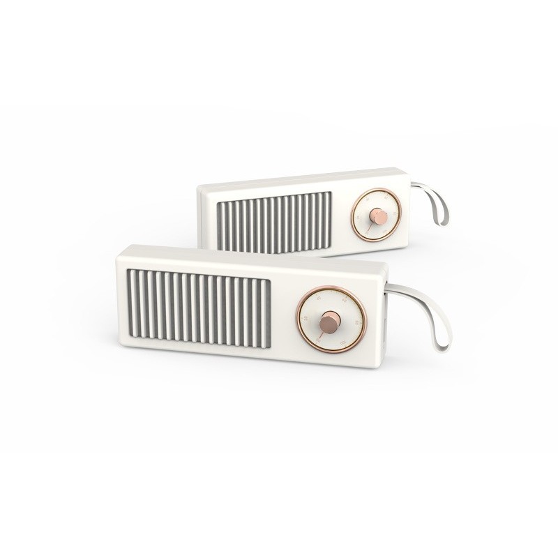 Pequena coluna bluetooth de aspecto ''retro'', tem bateria interna que proporciona autonomia de funcionamento até 8-9 hrs.