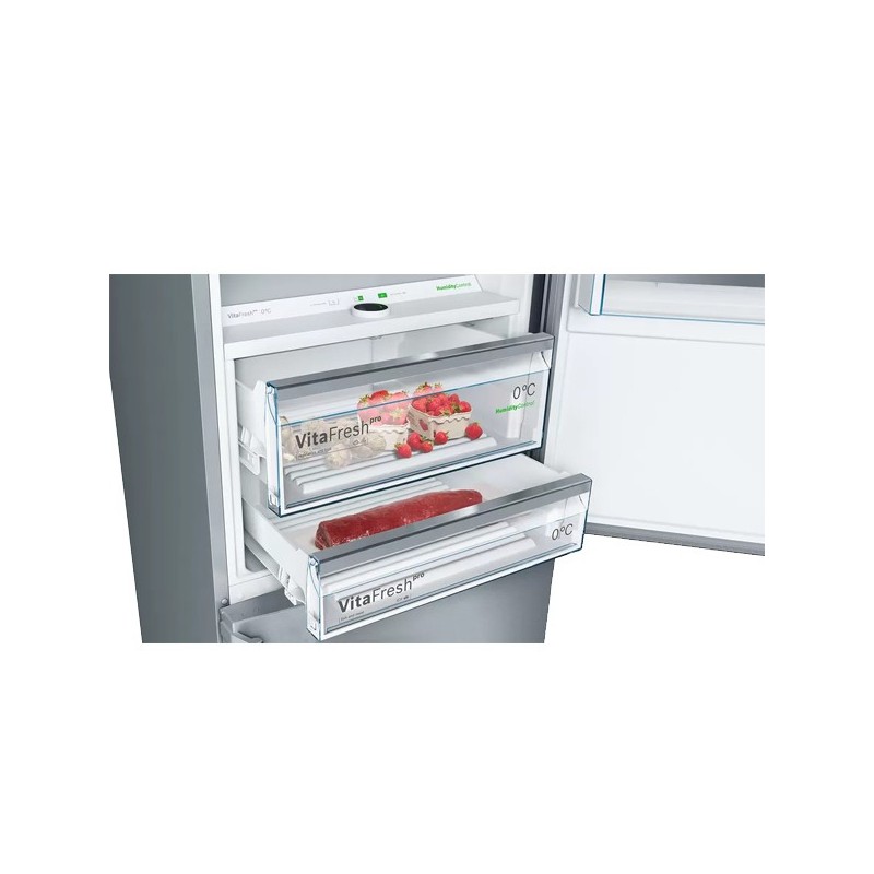 1 gaveta VitaFresh pro 0°C com controlo de humidade e temperatura - frutas, legumes, carne e peixe mantêm as vitaminas e conservam-se frescos 3 vezes mais tempo. 1 gaveta VitaFresh pro 0°C com controlo da temperatura - carne e peixe mantêm-se frescos até 3 vezes mais tempo