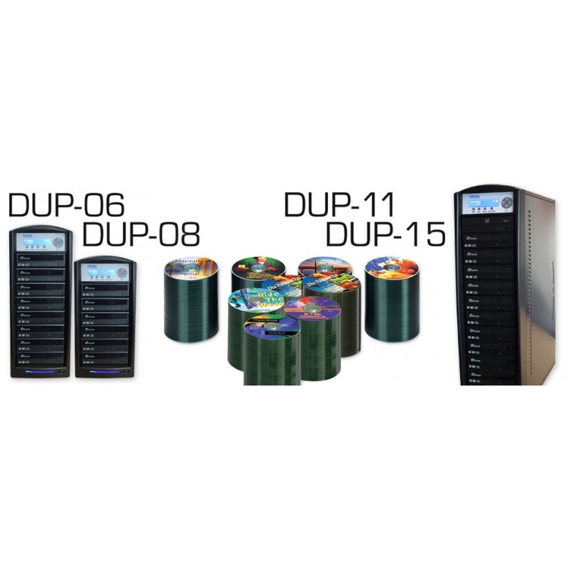Torre de duplicação de CDs/DVDs, com um leitor e 8 duplicadores de velocidade 48x CD-R, 16x DVD±R, 8x DVD+R DL. É um sistema autónomo, não necessita de ligar a um PC para funcionar. Inclui disco de 320 GB para armazenar imagens de CDs para usar mais tarde.