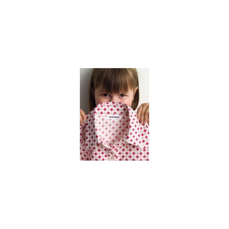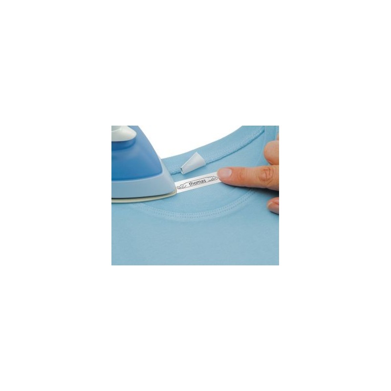 Fita LetraTAG para marcar roupa de 2m x 12mm com letras pretas em fundo branco. Ref. DYMO: 18769.