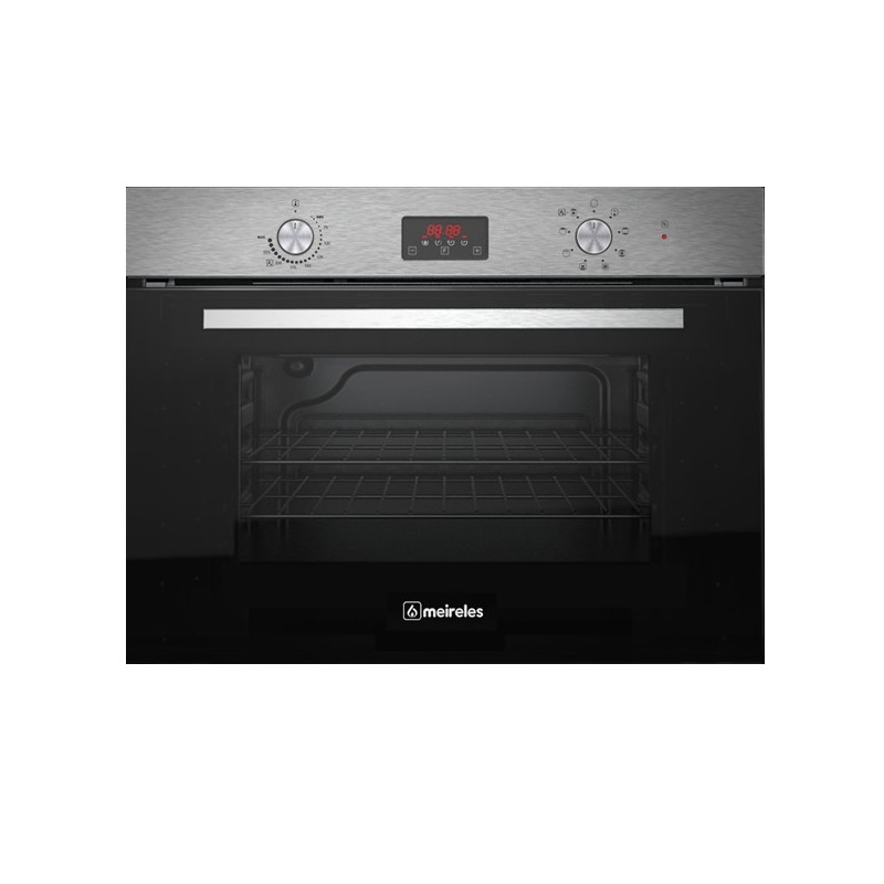 Forno eléctrico ventilado: 8 funções (luz, descongelação, grelhador, grelhador com ventilação, resistência superior e inferior, resistência superior e inferior com ventilação, resistência inferior com ventilação, resistência circular e ventilação)