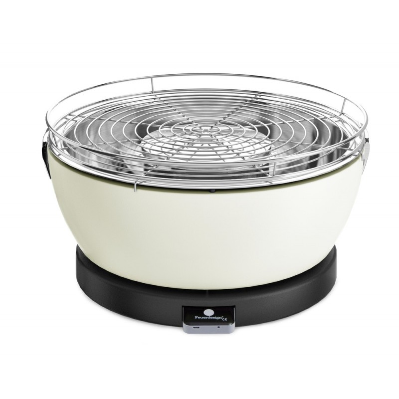 Feuerdesign Vesuvio. Modelo: grelha, Fonte de calor: Carvão, Diâmetro da superfície de cozimento: 33 cm. Fator de forma: Tampo de mesa, Tipo de superfície: Forma redonda para bolo, Cor da caixa: Creme. Largura do produto: 350 mm, Profundidade da Unidade: 350 mm, Altura da Unidade: 185 mm