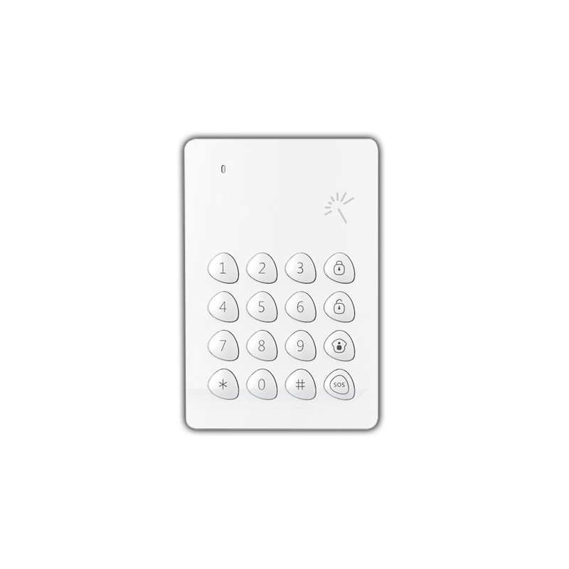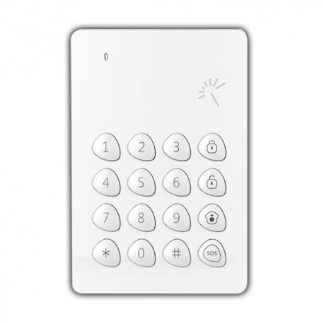 Teclado independente para arme/desarme do sistema de alarme. É compatível com o painel de alarme, comunica-se com este sem fios, e permite armá-lo através do seu teclado numérico, e desarmá-lo através do mesmo teclado numérico ou por meio de porta-chaves de proximidade.