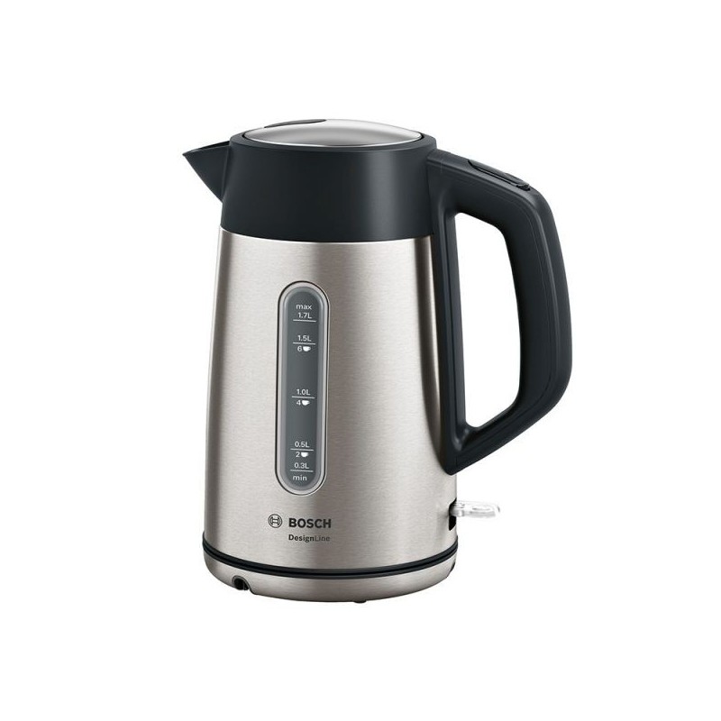 2400 W. Sem fio. Corpo, base e tampa em aço inoxidavel. Capacidade 1,7 l. Indicador de agua em litros e numero de chavenas em ambos os lados permite aquecer a quantidade de agua necessaria para um aquecimento mais rapido e maior poupança energetica. Saida de agua otimizada. Resistencia oculta. Triplo sistema de segurança: desligar automatico ao ferver, protecçao contra sobreaquecimento e funcionamento em vazio.
