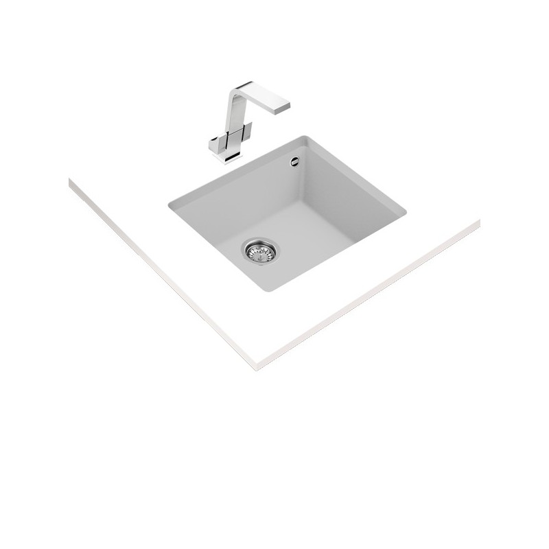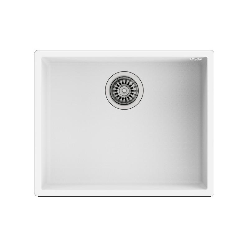 Sob TampoLava-louças de uma baciaTegranito de alta resistênciaNão rugoso e fácil de limparProfundidade da bacia: 200 mmMóveis de 60 cmMedidas gerais (lxp): 540x440mmCor: Branco ártico
