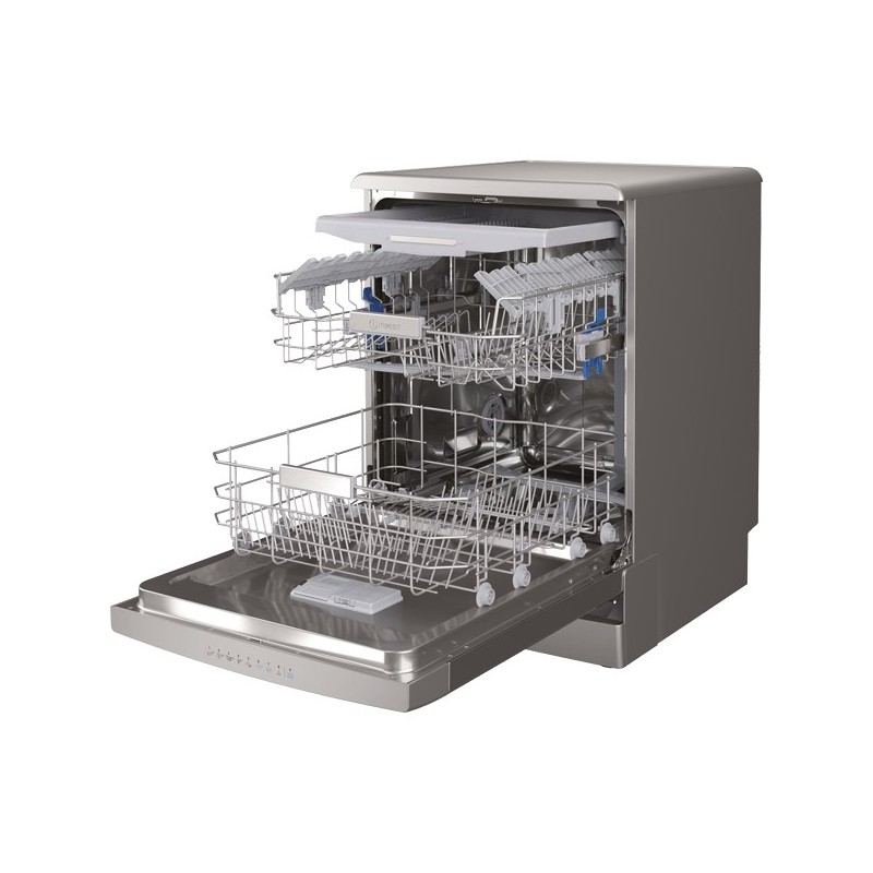 Capacidade: 14 talheres - Classe energética: A+++/ D - 3 temperaturas de lavagem - Classe de eficiência de lavagem/ secagem: A/A - Display Digital - Terceiro Cesto - Push&Go - 9 programas de lavagem - Cesto superior ajustável em altura - Sistema de segurança: AquaStop - Sistema de secagem: Auto Door (DOS) - Nível de ruído: 43 dB(A) - Consumo de água: 9.5L/ciclo - Consumo de energia: 238 kWh - Cor: Inox - A 85 x L 60 x P 59 cm