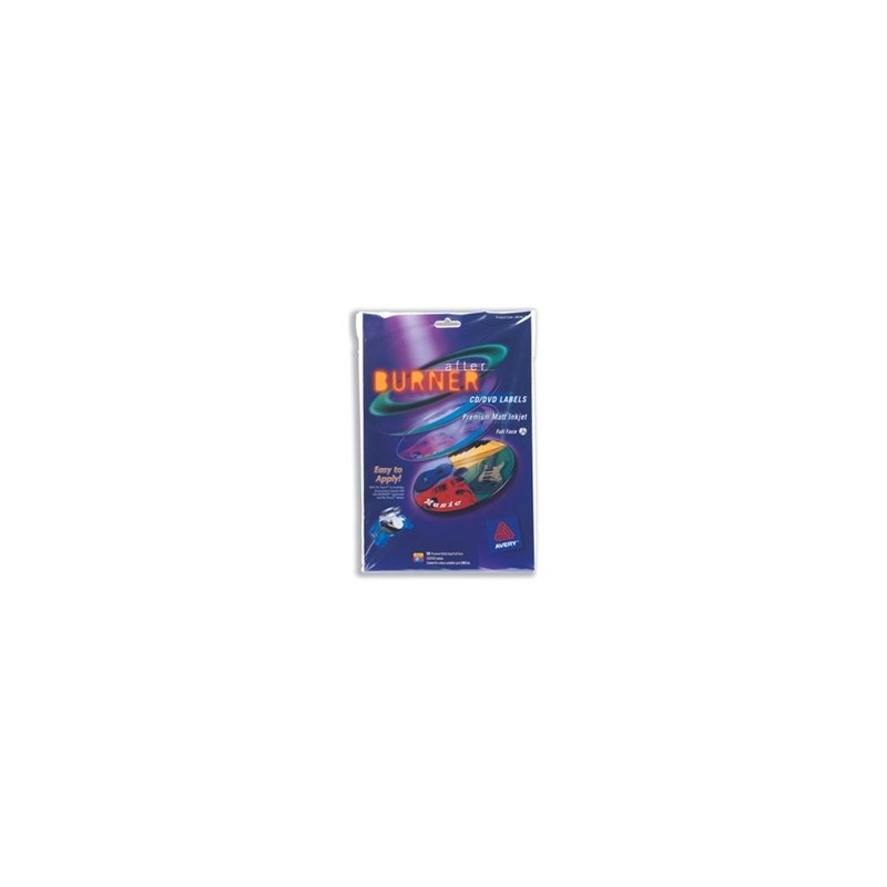 2 etqs/folha, 25 folhas. Etiquetas CD/DVD para impressora laser. As etiquetas têm abas para segurar a etiqueta no aplicador afterBURNER.