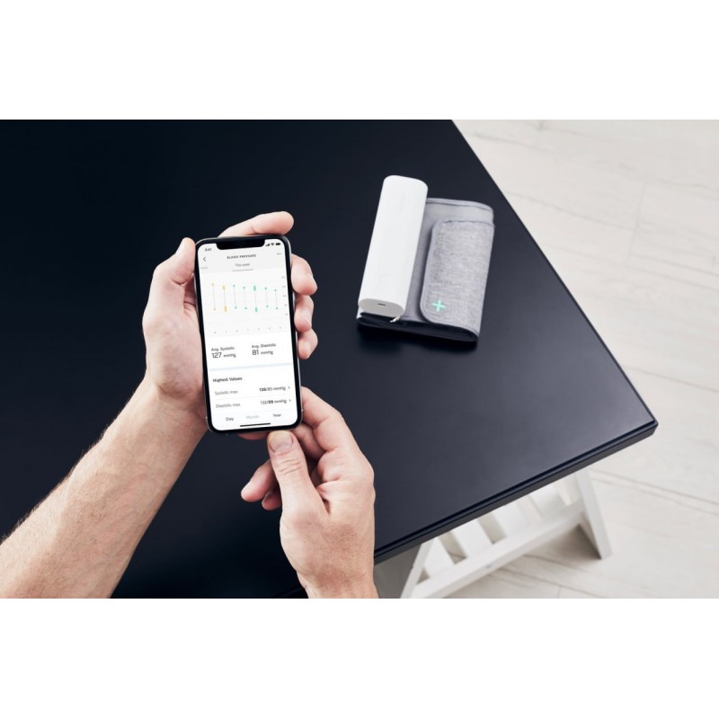 Aparelho medidor de tensão arterial e ritmo cardíaco, mostra no visor LED alguns indicadores e sincroniza os dados de maneira wireless (bluetooth ou wifi) para a app de um telemóvel ou tablet iOS/android, permitindo guardar e consultar o histórico. A bateria é recarregável por cabo micro-USB e tem autonomia para até 6 meses de funcionamento. Não está certificado pelo Infarmed para uso em serviços médicos, unidades de saúde, e farmácias.