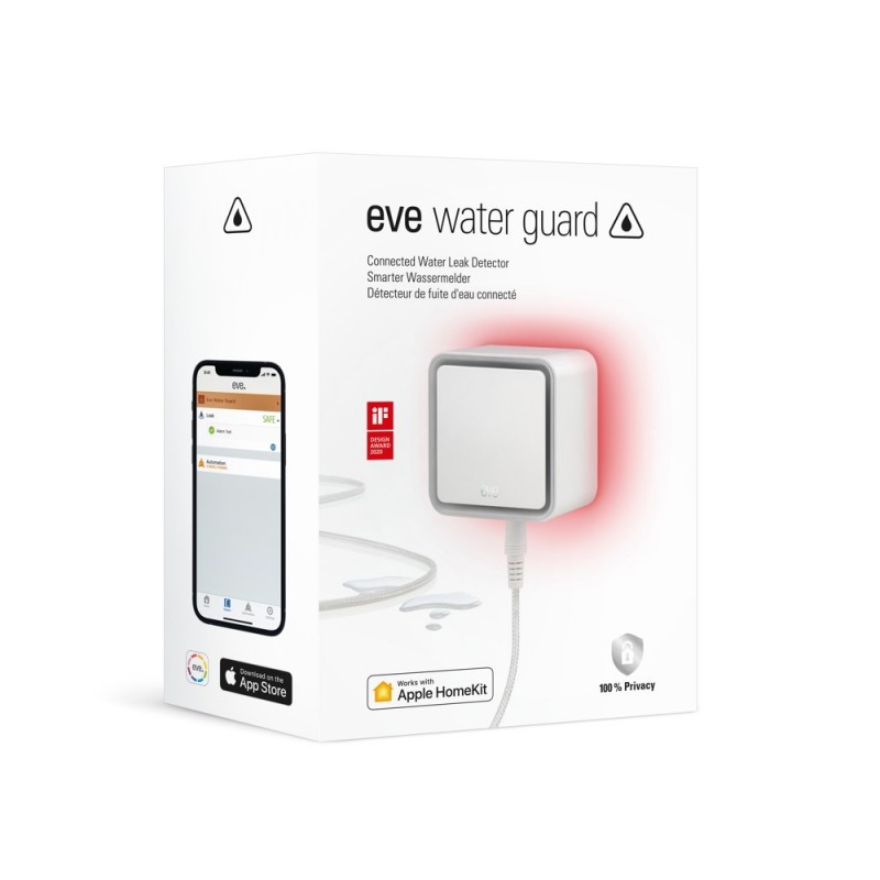 Sensor para detectar fugas de ?gua e inunda??es, provocadas por exemplo, por m?quinas de lavar, torneiras abertas, etc. Tem um cabo de 2 metros (expans?vel at? 150m) que fica pousado no ch?o. Se detectar ?gua envia um aviso para a App instalada num iPhone ou iPad, e alerta visualmente com uma luz vermelha que pisca e um alarme sonoro de 100 dB. ? compat?vel com Apple HomeKit, Thread e Matter.