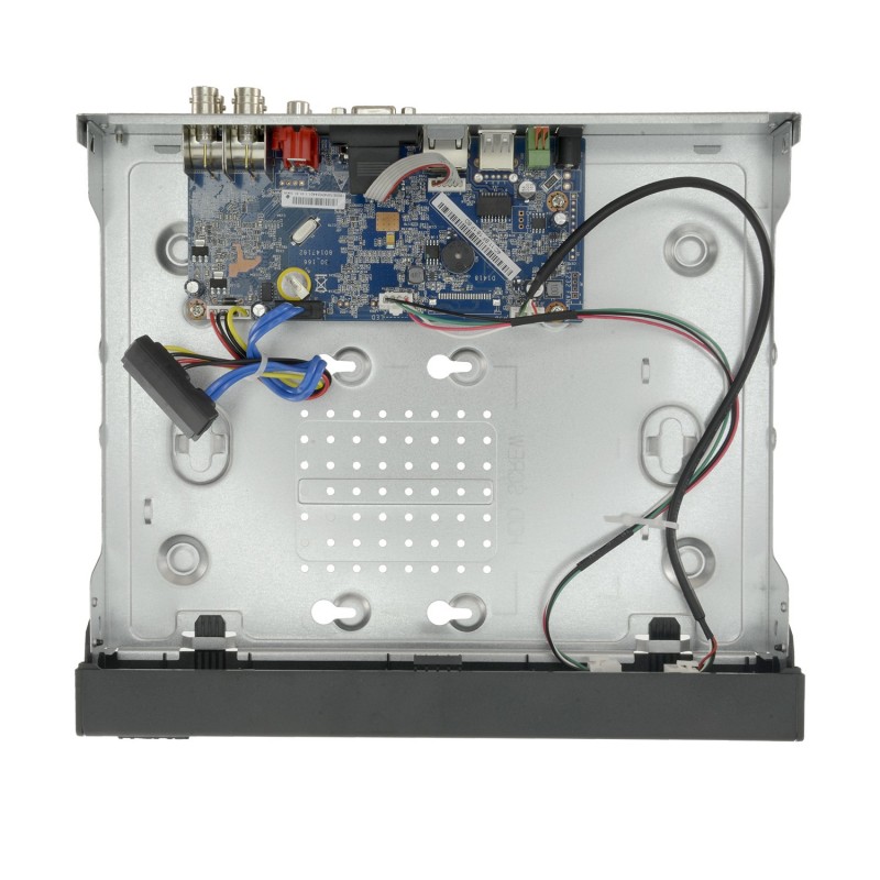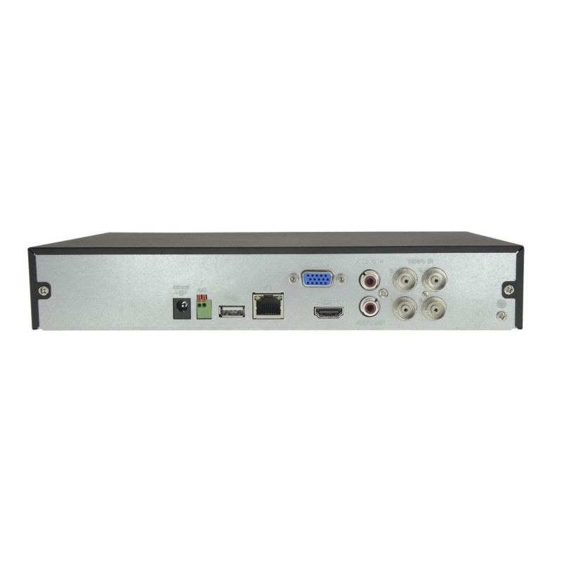 Dispõe de 4 entradas de vídeo por conexão BNC, permitindo num mesmo canal câmaras HDCVI ou analógicas CVBS indistintamente, e 1 entrada de áudio por conexão RCA. Conta com 1 saída de áudio RCA e 2 saídas de vídeo: uma saída VGA e uma saída HDMI Full HD. Sistema operativo Linux instalado, com multitarefa pentaplex que permite: visualização em directo, gravação, reprodução, backup e acesso remoto ao mesmo tempo.
