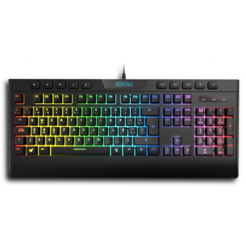 Krom Kalyos. Forma do factor do teclado: Padrão. Estilo de teclado: Em frente/linha reta. Interface de dispositivo: USB, Interruptor do teclado: Interruptor de membrana, Número de teclas do teclado: 105. Tipo de retroiluminação: LED RGB, Descanso de pulso. Comprimento do cabo: 1,5 m. Uso recomendado: Jogos. Cor do produto: Preto. Rato incluído