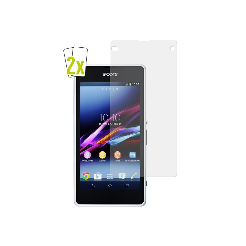 Conjunto de 2 películas de protecção para o ecrã do Sony Xperia Z1 Compact; inclui pano de limpeza.