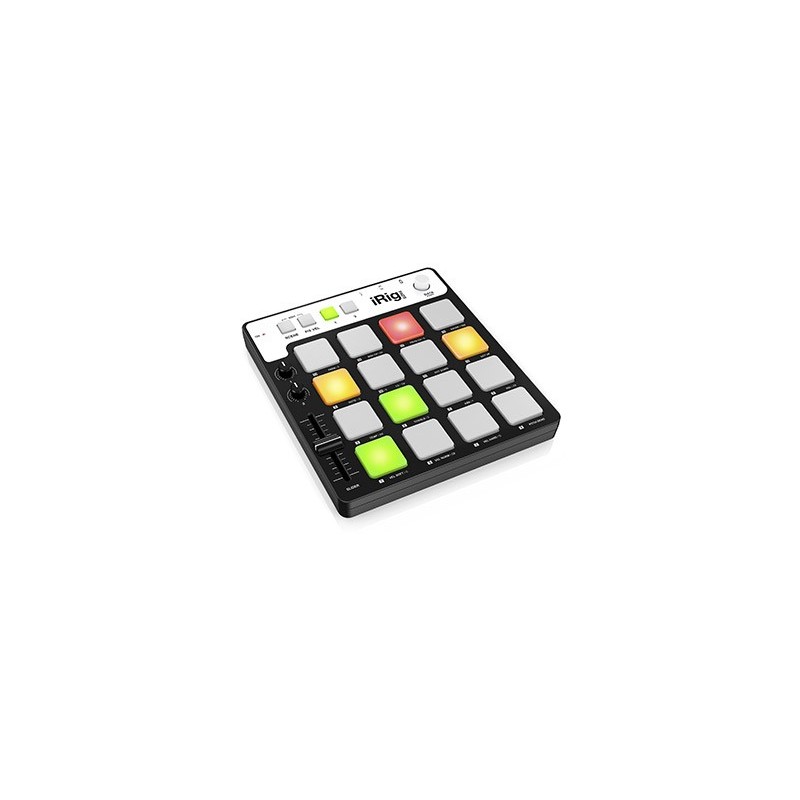 Controlador MIDI para iOS e Mac/Windows, tem 16 teclas retro-iluminadas, permite controlar dados, 2 botões, e pedal externo. Inclui cabos lightining e USB.