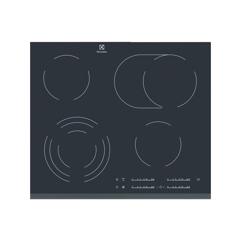 Funções: Indicador de calor residual em três passos, Alarme acústico, Aquecimento automático, Segurança de crianças, Temporizador, Temporizador Eco, Bloqueio de painel, Aviso por minutos, Função Pausa, Desativar som, Temporizador