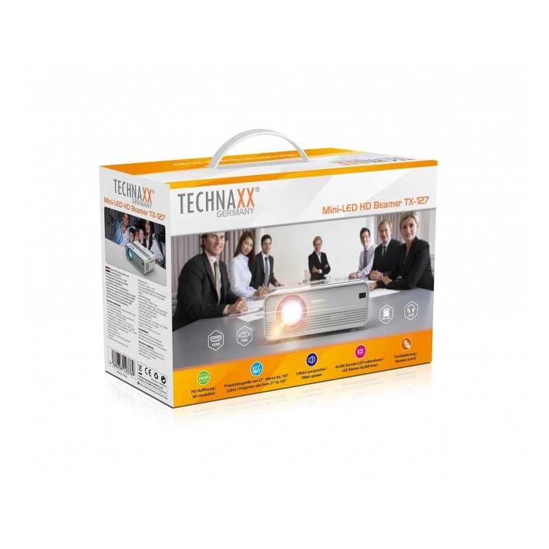 >Projeção de Imagem>Projectores>Technaxx Projector Mini-LED HD Beamer TX-127 2000 lumens 0,8 a 3,8 m HDMI VGA AV USB Disco Externo ou Micro SD - 4260358123769