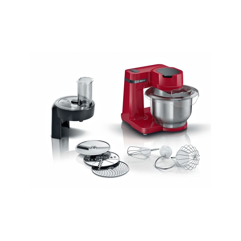 Bosch Serie 2 MUM. Capacidade da tigela: 3,8 l, Cor do produto: Vermelho, Tipo de controlo: Botões. Material da taça: Inox, Material do corpo do produto: Metal, Plástico. Potência: 700 W, Voltagem de entrada AC: 220 - 240 V, Frequência de entrada AC: 50/60 Hz. Largura: 266 mm, Profundidade: 266 mm, Altura: 277 mm. Comprimento da embalagem: 352 mm, Largura da embalagem: 400 mm, Altura da embalagem: 400 mm