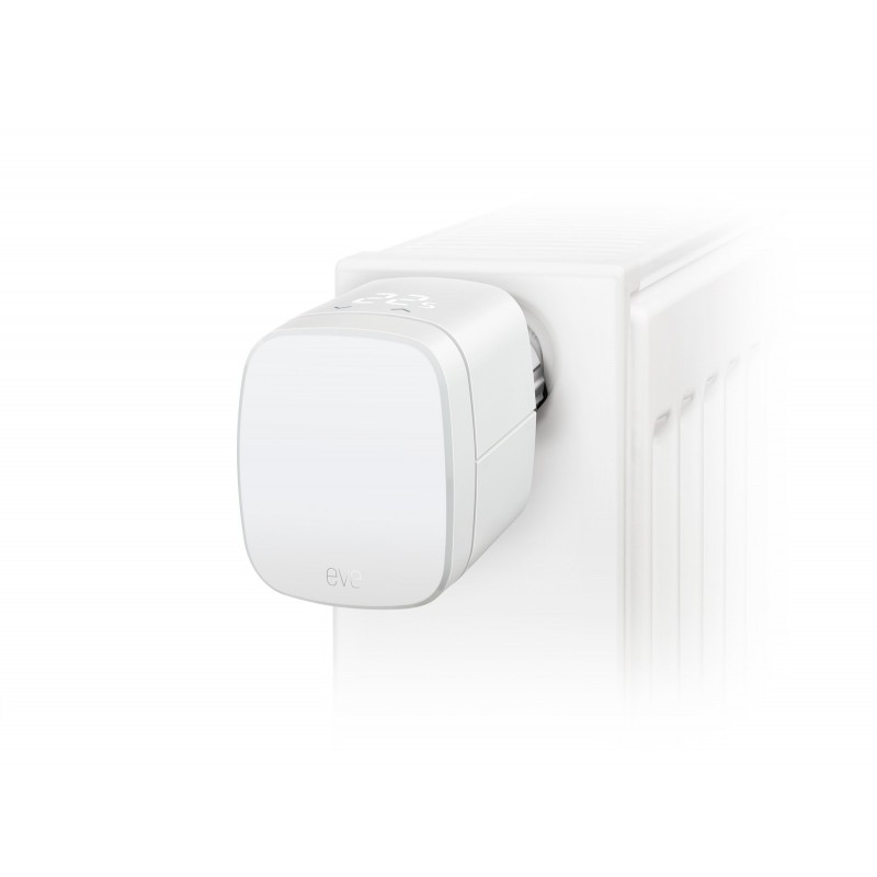Válvula para radiadores de calor/sistema de aquecimento comandável através de uma aplicação iOS e directamente no próprio equipamento (visor temperatura e setas para aumentar/diminuir), é compatível com o Apple HomeKit. A válvula é do tipo M 30 x 1.5 e inclui adaptadores para sistemas Danfoss RA, RAV e TRAVL. Permite fazer gráficos da evolução da temperatura, analisar padrões de consumo e definir horários e temperaturas de aquecimento. Inclui 2 pilhas AA.