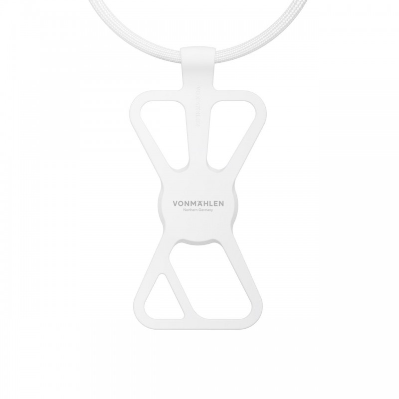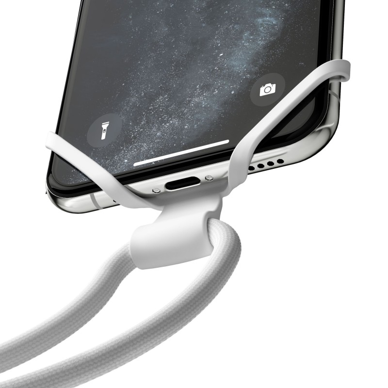 Fita de suspensão para telemóvel. A sua estrutura em silicone é elástica e permite a compatibilidade com a maior parte dos modelos de telefone, a fita em nylon tem 1.5m de comprimento.