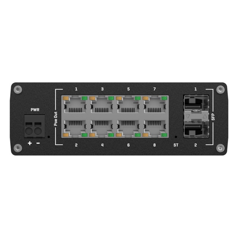 | Alimentação | Conector DC 2 Pinos industriais 7~57VDC que não alimentam dispositivos PoE e 44~57VDC que alimentam dispositivos PoE (fonte de alimentação não incluída) Consumo máximo 8W / 248W com PoE |