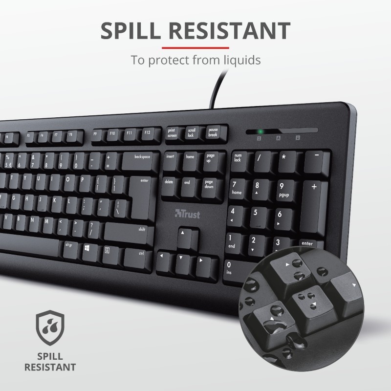 | Funcionalidades de proteção | Resistente a derrames |