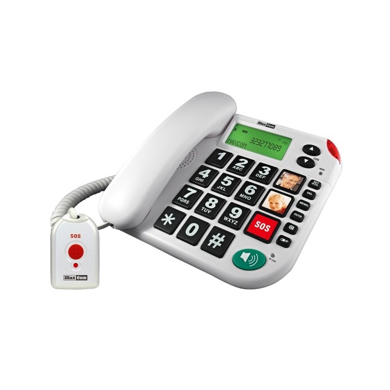 MaxCom KXT481 SOS. Tipo: Telefone analógico, Tipo de auscultador: Estação com fios. Altifalante - Mãos-livres. Identificação de chamadas. Cor do produto: Branco. Número de conjunto de mãos incluídas: 1