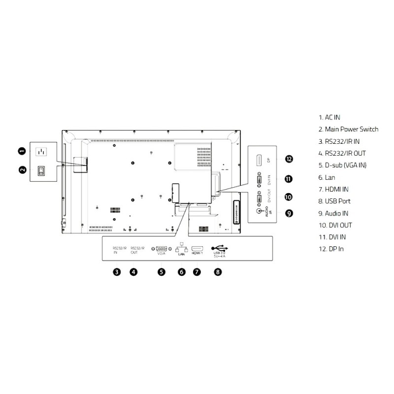 | Entradas | 1xHDMI, 1xDVI, 1xVGA, 1xDP, 1xUSB, 1xRS232 |