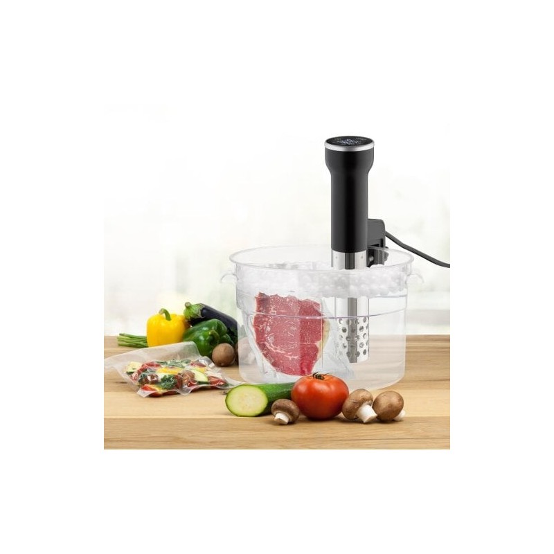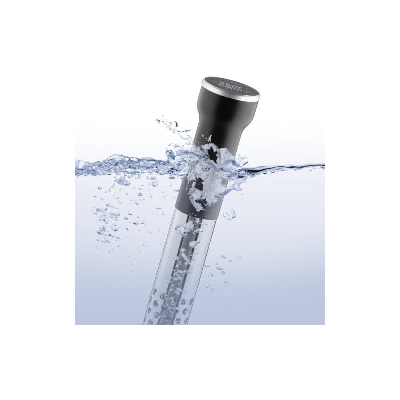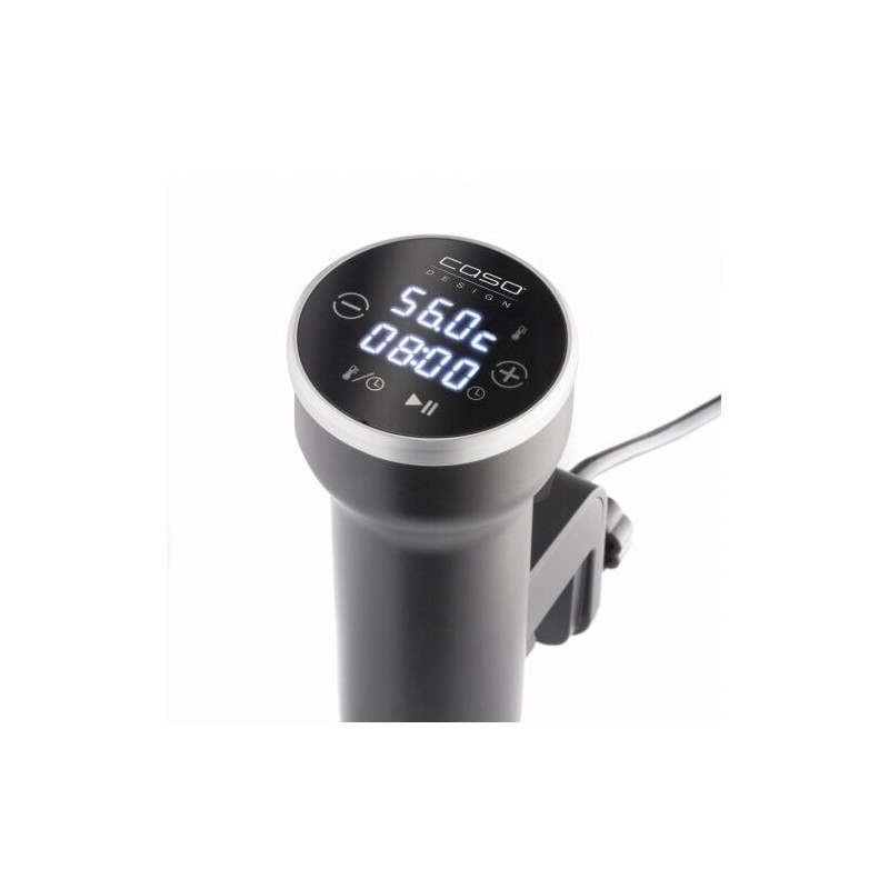 Caso Garer SV 400. Tipo de produto: Circulador de imersão sous vide, Cor do produto: Preto, Inox, Tipo de controlo: Toque. Temperatura (mín.): 25 °C, Temperatura (máx.): 90 °C, Duração máxima do temporizador: 99 h. Potência: 1000 W, Voltagem de entrada AC: 220 - 240 V, Frequência de entrada AC: 50 / 60 Hz. Comprimento: 70 mm, Largura: 130 mm, Altura: 310 mm